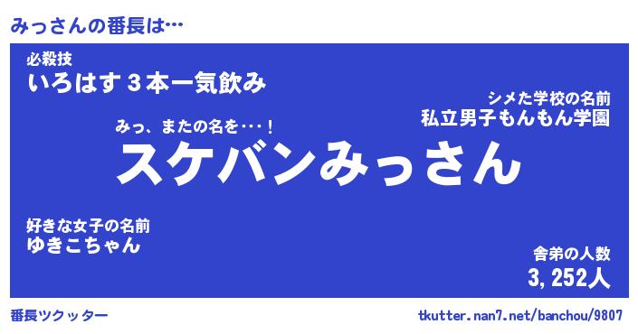 | ヒーロー風カッコイイあだ名 | 『スーパーミッ』『ウルトラみっマン』 |