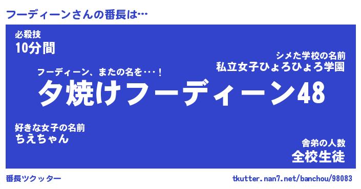 | ポケモン風あだ名 | 『フーチュウ』『フーデダネ』 |