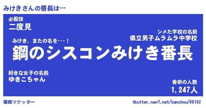 | ヘコむあだ名 | 『みけにゅー』『酢こんぶ』 |