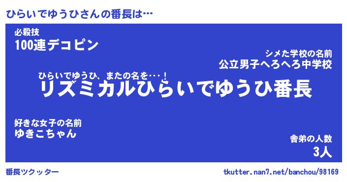 | ヘコむあだ名 | 『ひらもー』『つくし』『ひらぷりん』 |