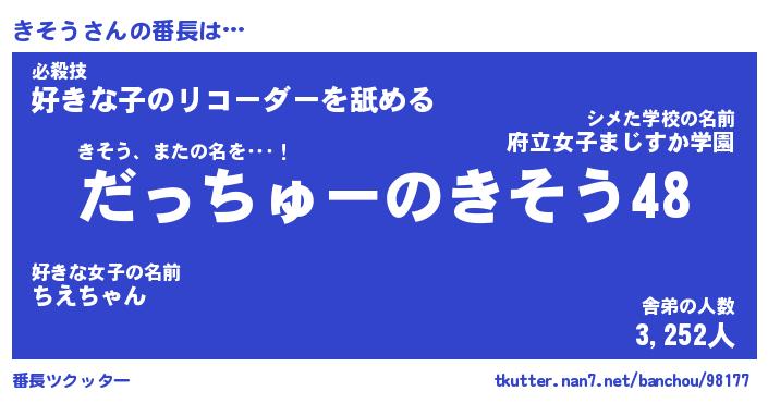 | ヒーロー風カッコイイあだ名 | 『スーパーキソウ』『ウルトラきそうマン』 |