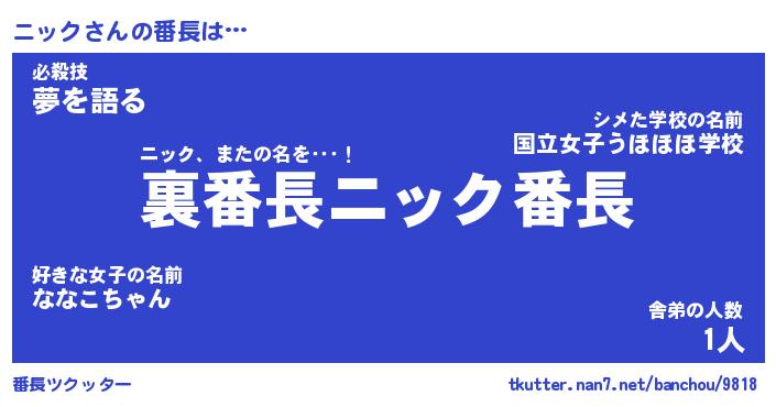 | 肩書あだ名 | 『ニック社長』『ニック大統領』 |