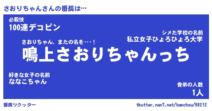 | 伝説のあだ名 | 『封印されしスナイパーさおりちゃん』 |