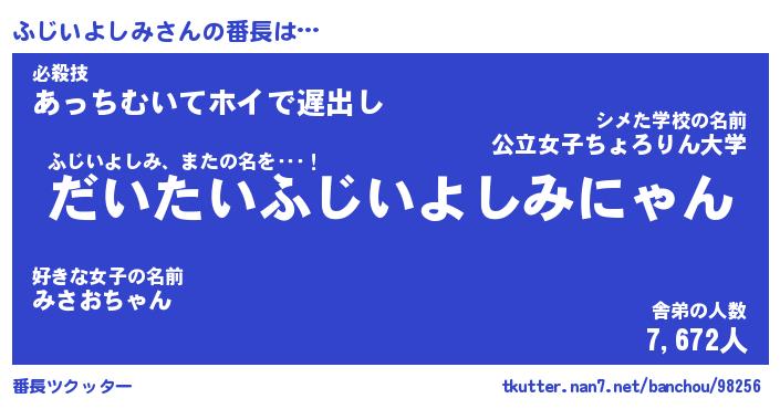 | ヘコむあだ名 | 『ふじにー』『酢こんぶ』『ふじを』 |