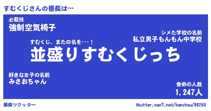| 意味不明あだ名 | 『ペロリンすむくじ』『永久保存すむくじ』 |