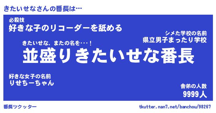 | 2回繰り返すあだ名 | 『きたきた』『ききたた』『ぬぷぬぷ』 |