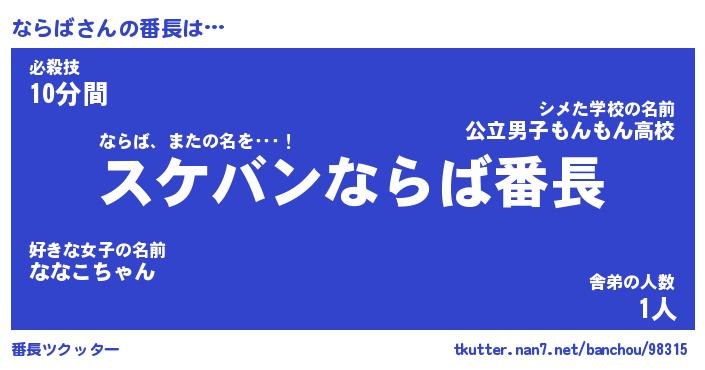 | ヒーロー風カッコイイあだ名 | 『スーパーナラバ』『ウルトラならばマン』 |