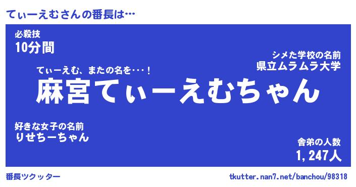 | 2回繰り返すあだ名 | 『てぃてぃ』『ててぃぃ』『がんがん』 |