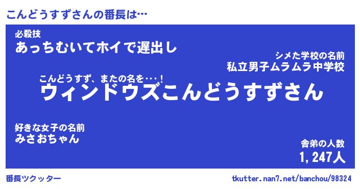 | 伝説のあだ名 | 『伝説のスナイパーこんどうすず』 |