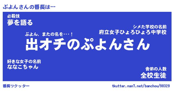 | 2回繰り返すあだ名 | 『ぷよぷよ』『ぷぷよよ』『うろうろ』 |