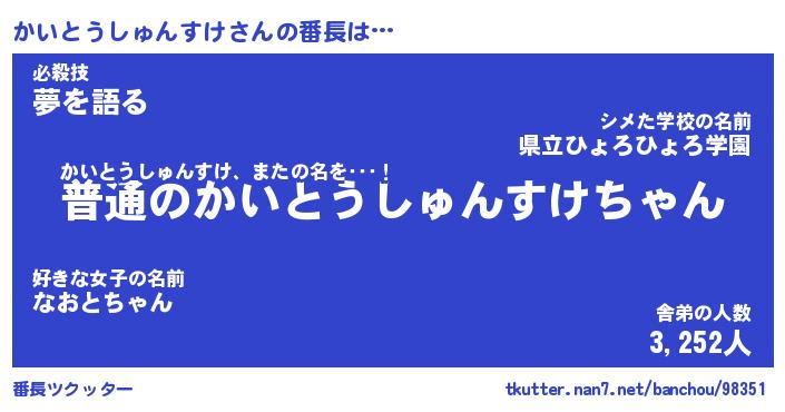 | 肩書あだ名 | 『かいとうしゅんすけ御曹司』 |