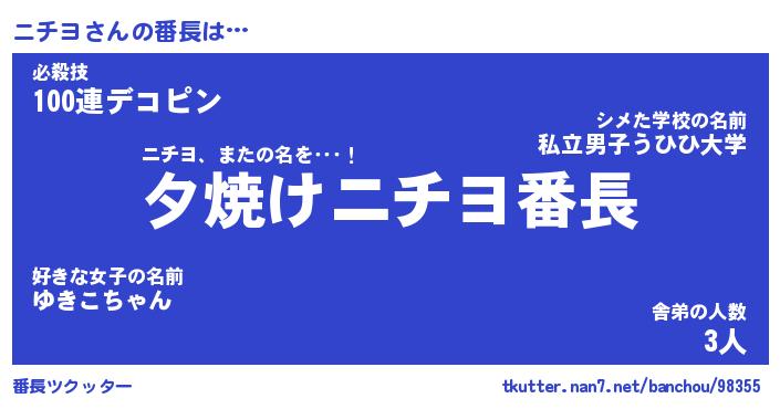 | ヒーロー風カッコイイあだ名 | 『スーパーニチヨ』『ウルトラニチヨマン』 |