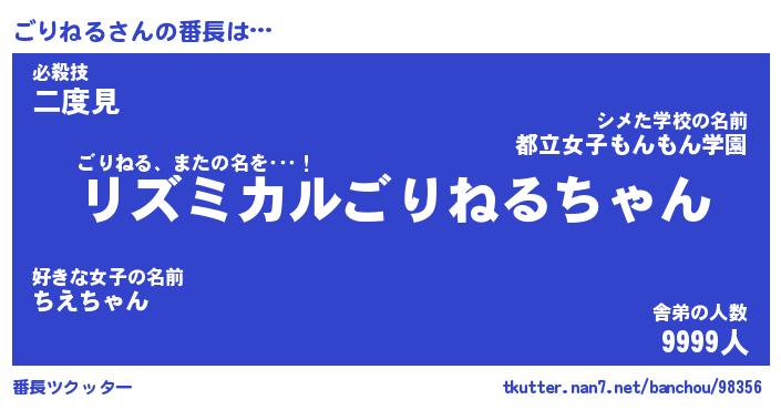 | 意味不明あだ名 | 『ペロリンごりねる』『永久保存ごりねる』 |