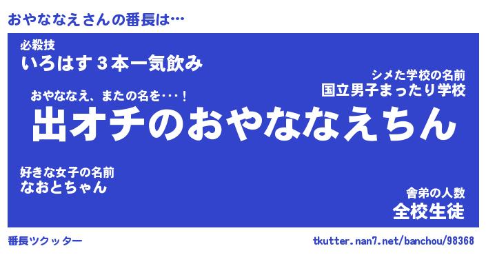 | 肩書あだ名 | 『おやななえ御曹司』『おやななえ団長』 |
