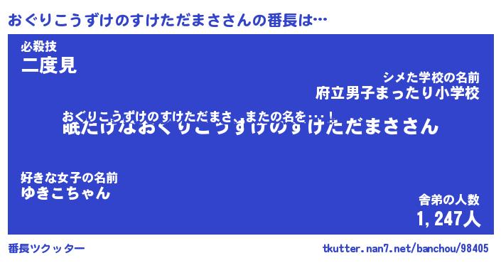 | 意味不明あだ名 | 『ペロリンおぐりこうずけのすけただまさ』 |