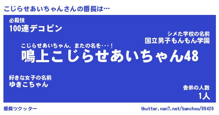 | 2回繰り返すあだ名 | 『こじこじ』『ここじじ』『あんあん』 |