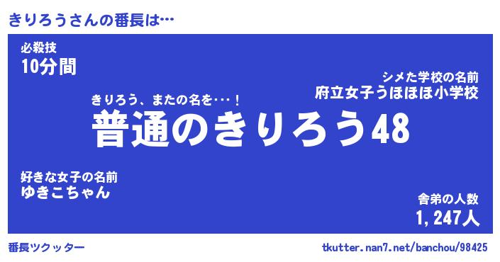 | ヒーロー風カッコイイあだ名 | 『スーパーキリロウ』『銀牙騎士キリ』 |