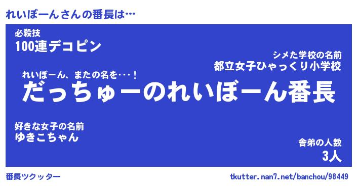 | 男性向けラノベタイトル風あだ名 | 『れいぼーんの憂鬱』 |