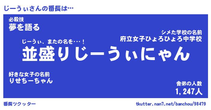 | 意味不明あだ名 | 『ペロリンじーうぃ』『永久保存じーうぃ』 |