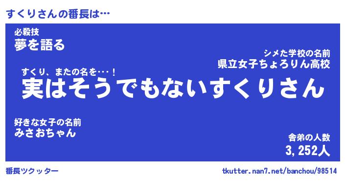 | ヘコむあだ名 | 『すくふぇ~』『豆乳』『すくお』 |