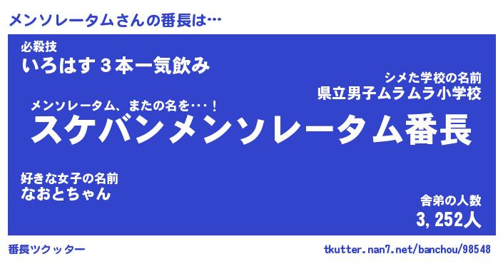 | ヘコむあだ名 | 『メンふぇ~』『なまこ酢』『メンお』 |