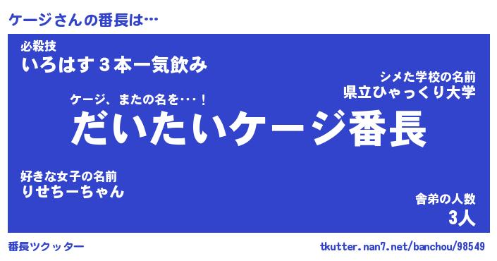 | ヘコむあだ名 | 『ケーもー』『なまこ酢』 |
