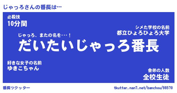| 男性向けラノベタイトル風あだ名 | 『じゃっろの憂鬱』 |