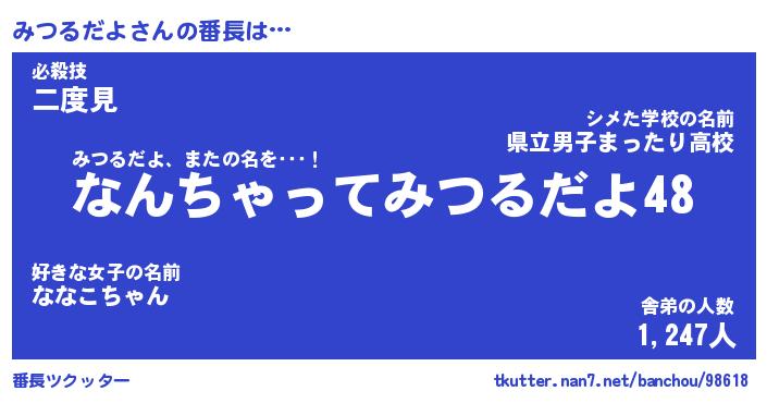 | 伝説のあだ名 | 『伝説の竜騎士みつるだよ』 |