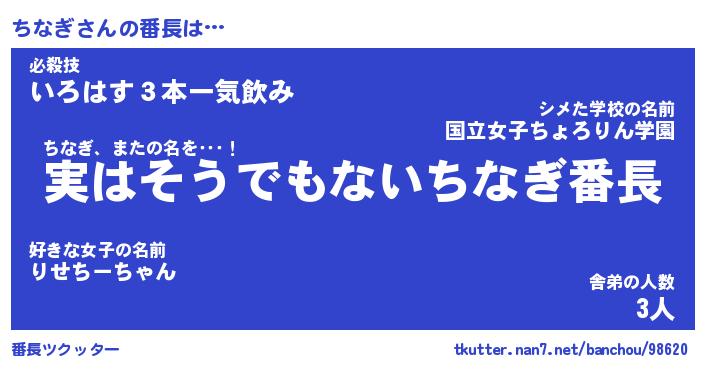 | ヘコむあだ名 | 『ちなにー』『なまこ酢』『ちな太郎』 |