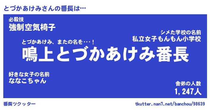 | 肩書あだ名 | 『とづかあけみ御曹司』 |