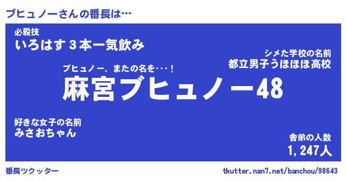 | 肩書あだ名 | 『ブヒュノー店長』『ブヒュノー国家主席』 |