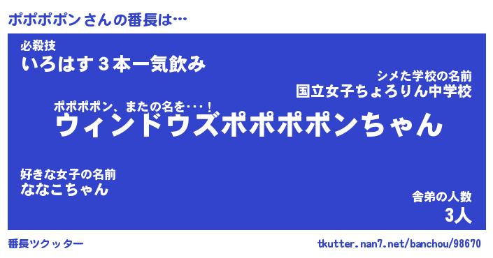 | ヒーロー風カッコイイあだ名 | 『スーパーポポポポン』『魔戒騎士ポポ』 |