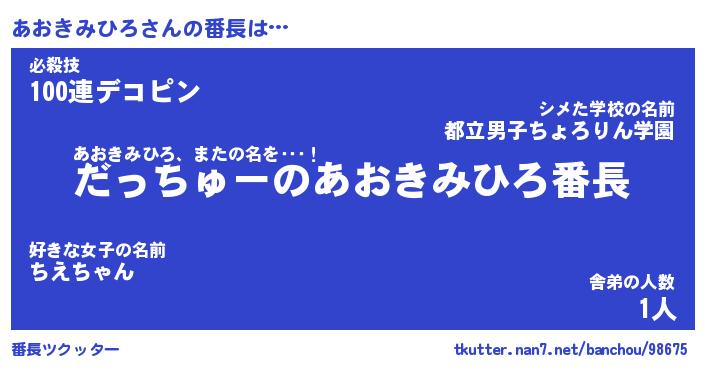 | 伝説のあだ名 | 『伝説のスナイパーあおきみひろ』 |