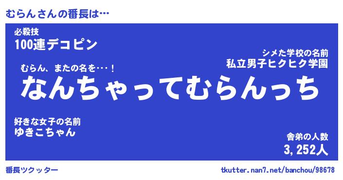 | ヒーロー風カッコイイあだ名 | 『スーパームラン』『ウルトラむらんマン』 |