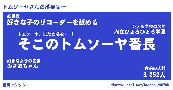 | ファンタジー風あだ名 | 『トムフェル』『エターナルトムソーヤー』 |