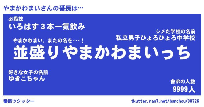 | ヒーロー風カッコイイあだ名 | 『スーパーヤマカワマイ』『天弓騎士ヤマ』 |