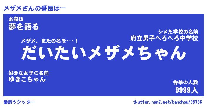 | 意味不明あだ名 | 『ペロリンメザメ』『メザメフォーエバー』 |