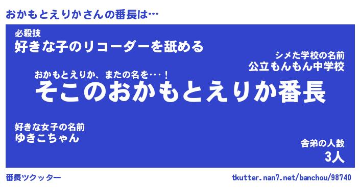 | 男性向けラノベタイトル風あだ名 | 『おかもとえりかの憂鬱』 |