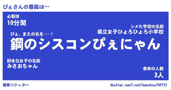 | ヘコむあだ名 | 『ぴぇふぇ~』『牛乳』『ぴぇを』 |