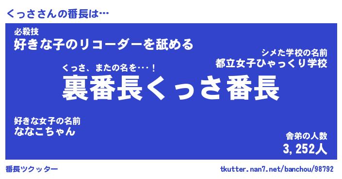 | 肩書あだ名 | 『くっさ社長』『くっさ国家主席』 |