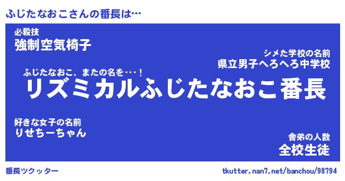 | ヒーロー風カッコイイあだ名 | 『スーパーフジタナオコ』『暗黒騎士フジ』 |