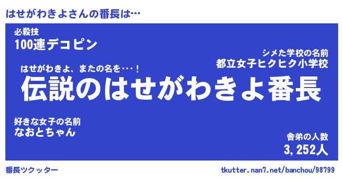 | 伝説のあだ名 | 『伝説のスナイパーはせがわきよ』 |