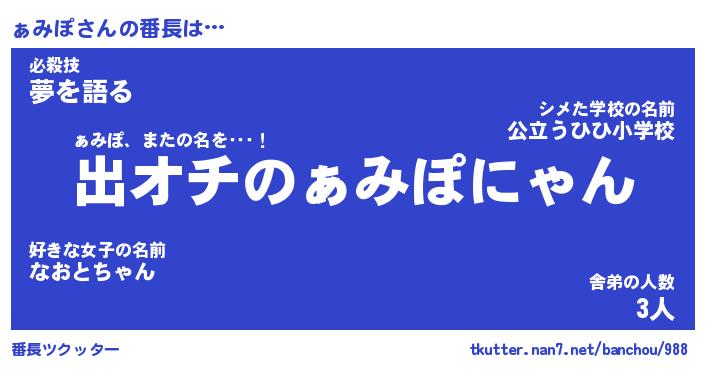 | ポケモン風あだ名 | 『ァミチュウ』『ァミポダネ』 |