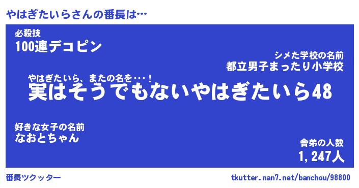 | 伝説のあだ名 | 『封印されし傭兵やはぎたいら』 |