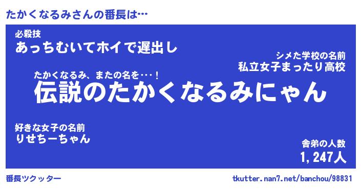 | ポケモン風あだ名 | 『タカチュウ』『タカクダネ』 |