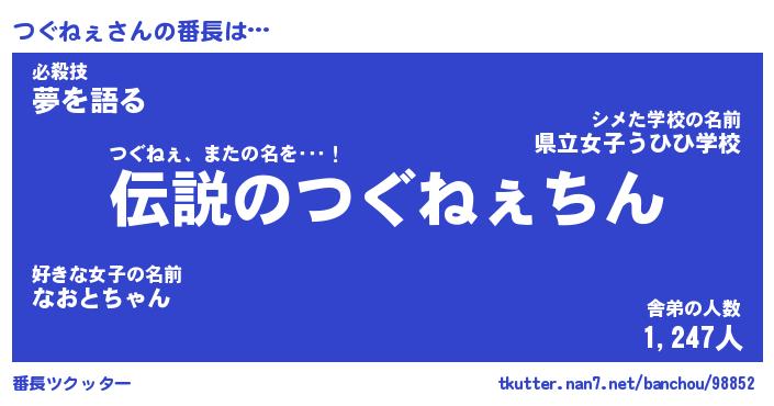 | 意味不明あだ名 | 『ペロリンつぐねぇ』『永久保存つぐねぇ』 |