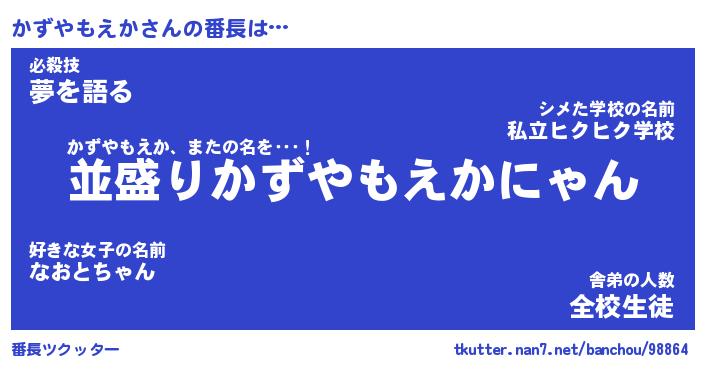 | 肩書あだ名 | 『かずやもえかCEO』『かずやもえか団長』 |