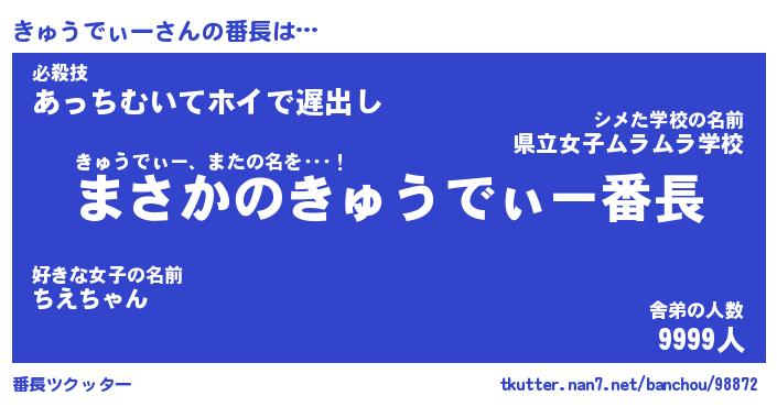| 伝説のあだ名 | 『伝説の竜騎士きゅうでぃー』 |