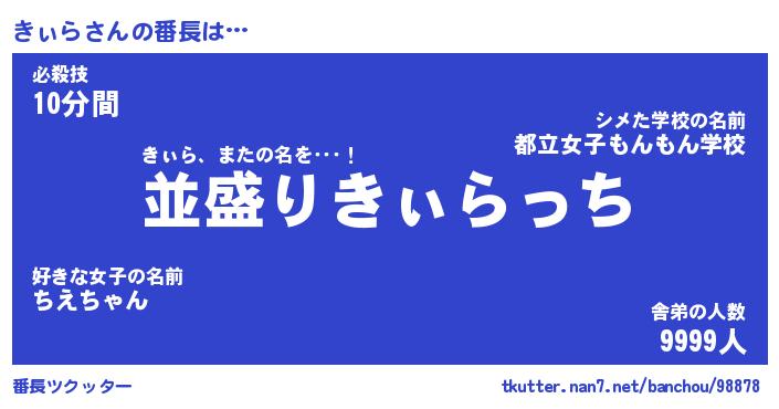 | ヒーロー風カッコイイあだ名 | 『スーパーキィラ』『ウルトラきぃらマン』 |