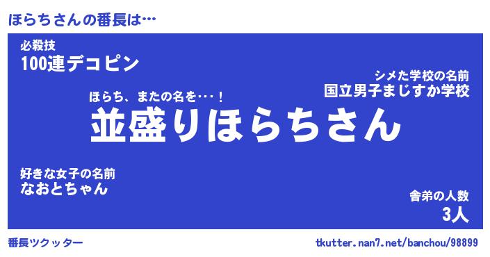 | ヘコむあだ名 | 『ほらもー』『つくし』『ほらお』 |